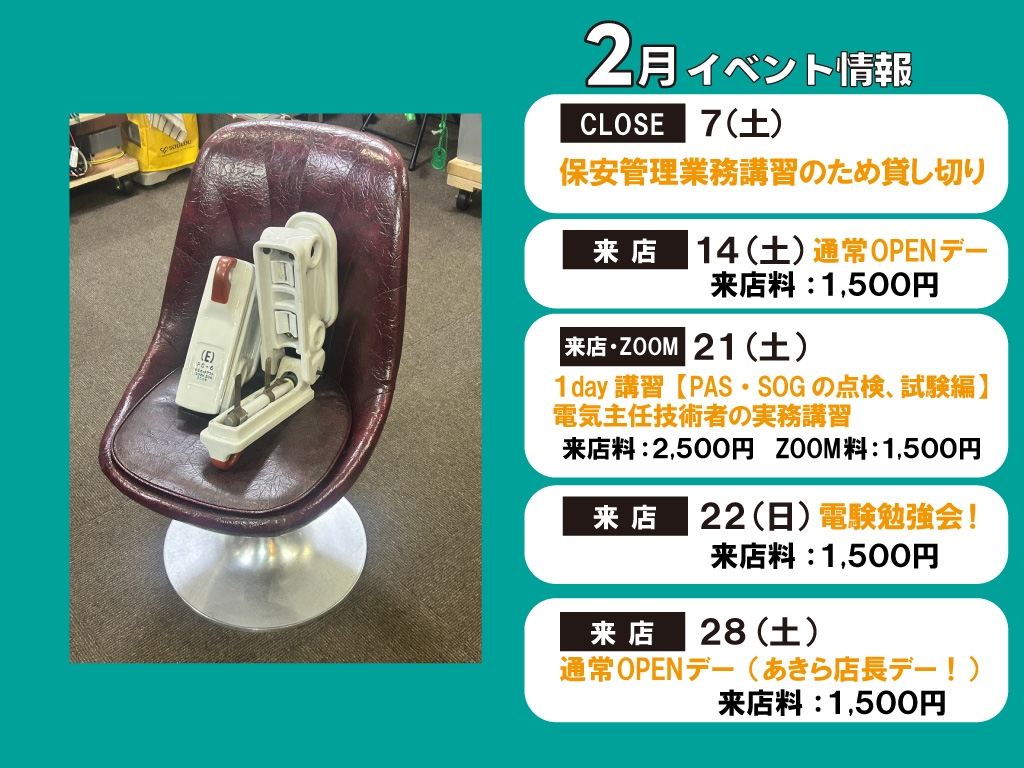 2026年2月カフェジカイベント&講習情報!~1day講習【PAS・SOGの点検、試験編】電気主任技術者の実務講習~